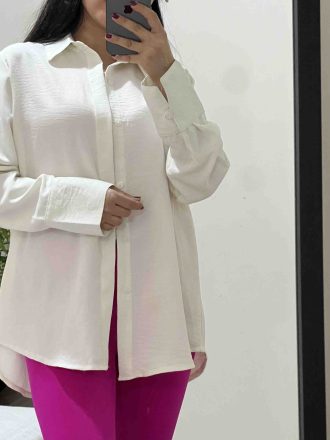 شومیز مانتو نخی وارداتی سفید شیری کد 1387