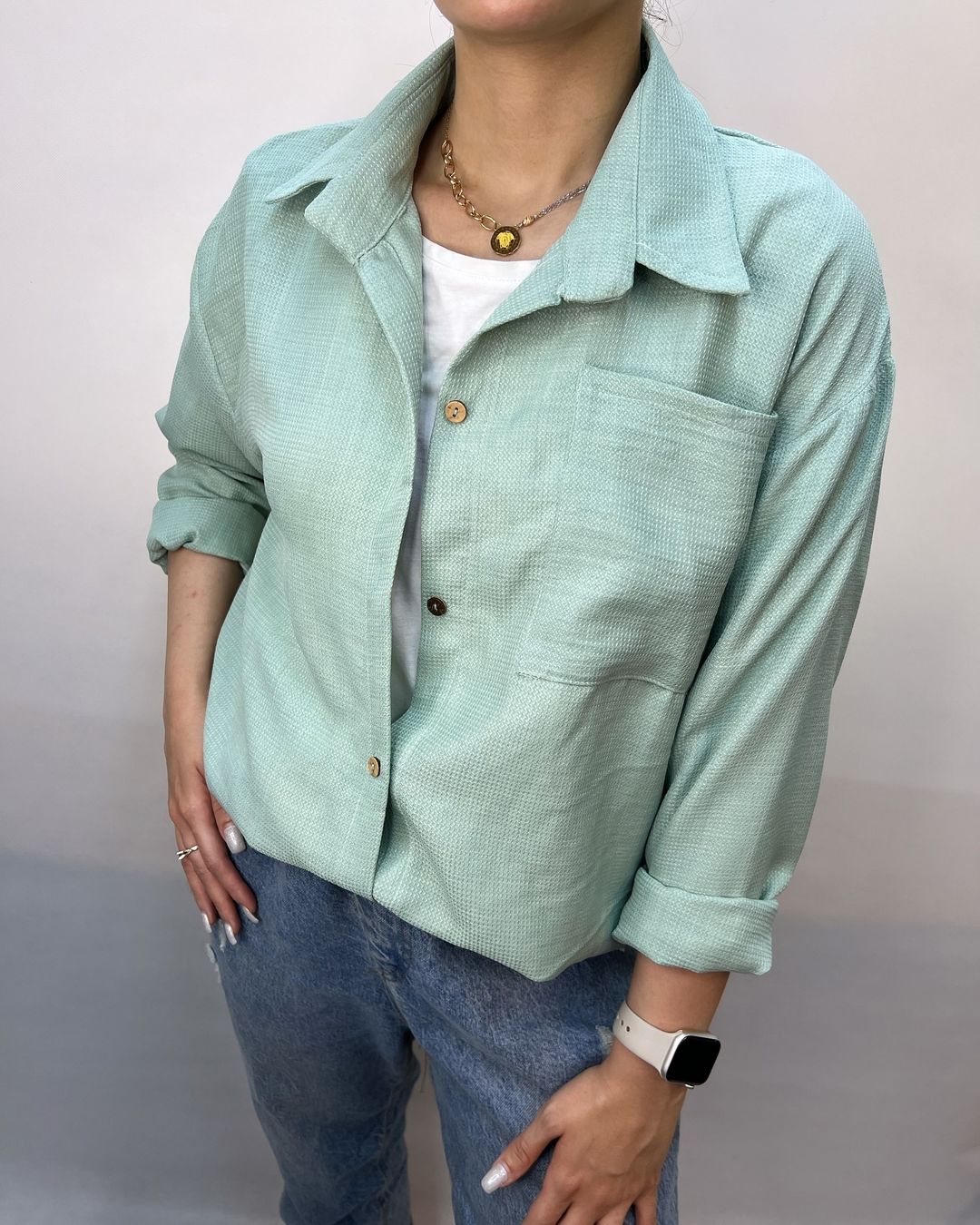شومیز راه راه سبز یک طرف جیب کد 4011