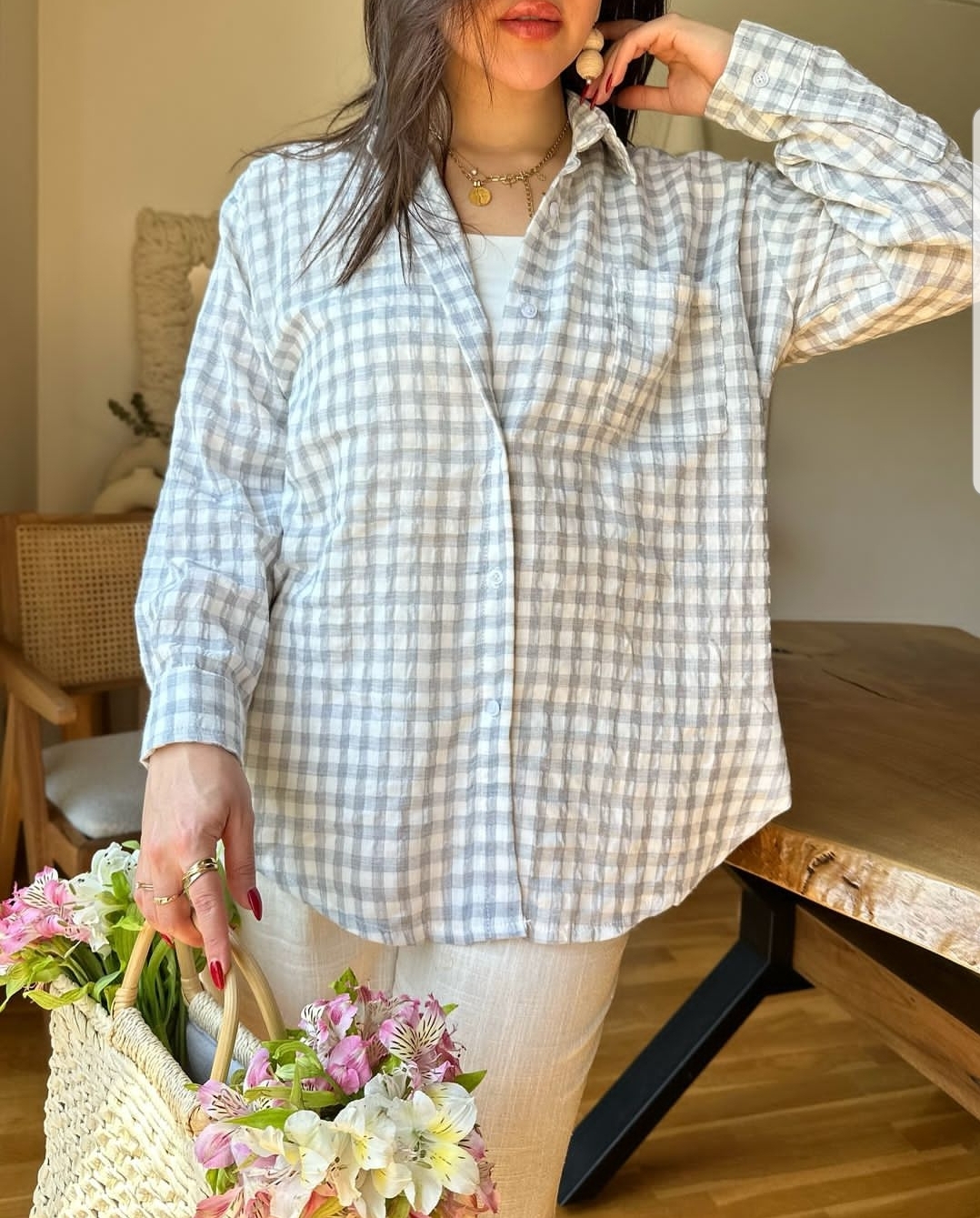 َ شومیز لینن پفکی چهارخونه کد 1396